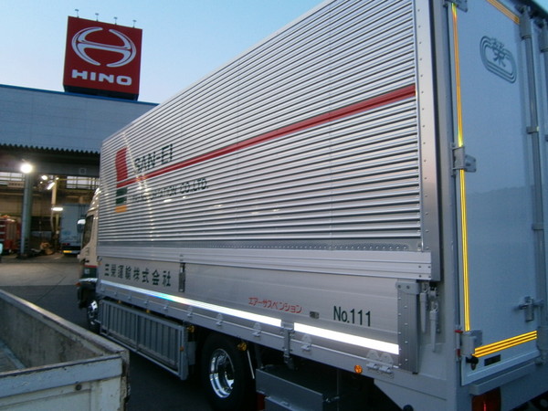 大錦運輸様コルゲート車のマーキングです。